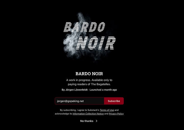 Get automatic access to Bardo Noir and Zenopolis by becoming a paid subscriber.