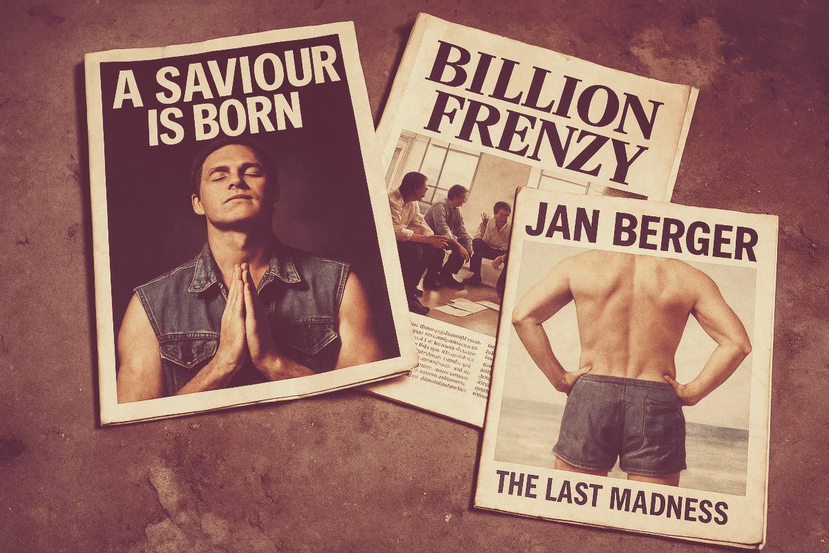 “A saviour is born,” read one cover headline, featuring the great Jan, wearing a denim vest, eyes closed, hands pressed together, chin lifted slightly as if to draw nearer to his supposed father, the Lord. Another cover needed just the words: “Billion frenzy.” According to the journalist, every Swedish investment firm was fighting for a stake in Clockwork, crawling into the office’s cushion room and being forced, barefoot, to prove their brilliance to the CEO in Tarzan underpants. When he was at his most childish and sadistic, he would make them play charades to get his point across. Other times, they had to use crayons in sketchbooks. Anonymous bankers in the article claimed it was all nonsense and degrading, but at the time the spirit of the age played right into the hands of the dotcom boys. It was different now and everything was going to be even more different. The game had to be played when billions upon billions were once again on the table.